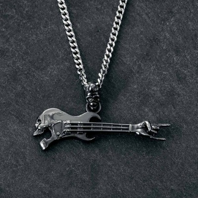Helloice Rock Gestures Skeleton Guitar Pendant in Black Gold
